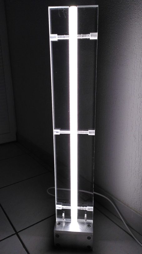 Um den Streulichteffekt auszu-nutzen sind die Plexiglas®-Platten nicht vollständig seitlich eingefasst.