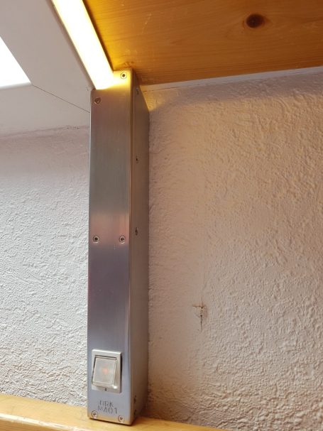 Box für Trafo und Schalter mit integriertem Aluminiumprofil für LED-Streifen